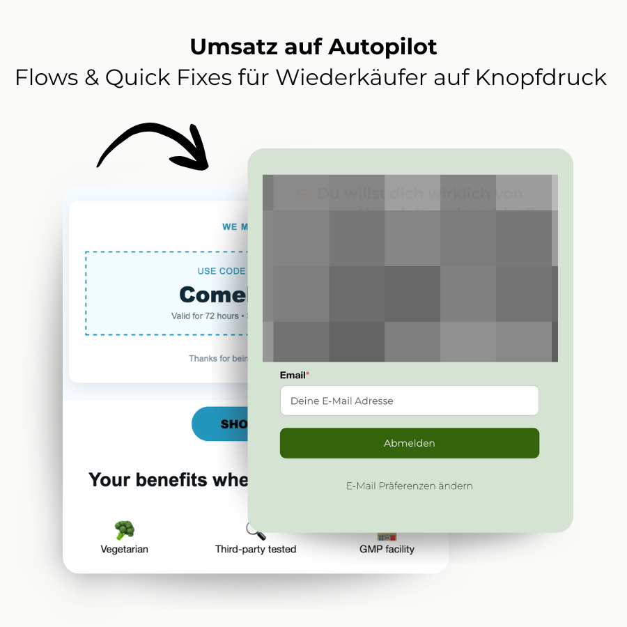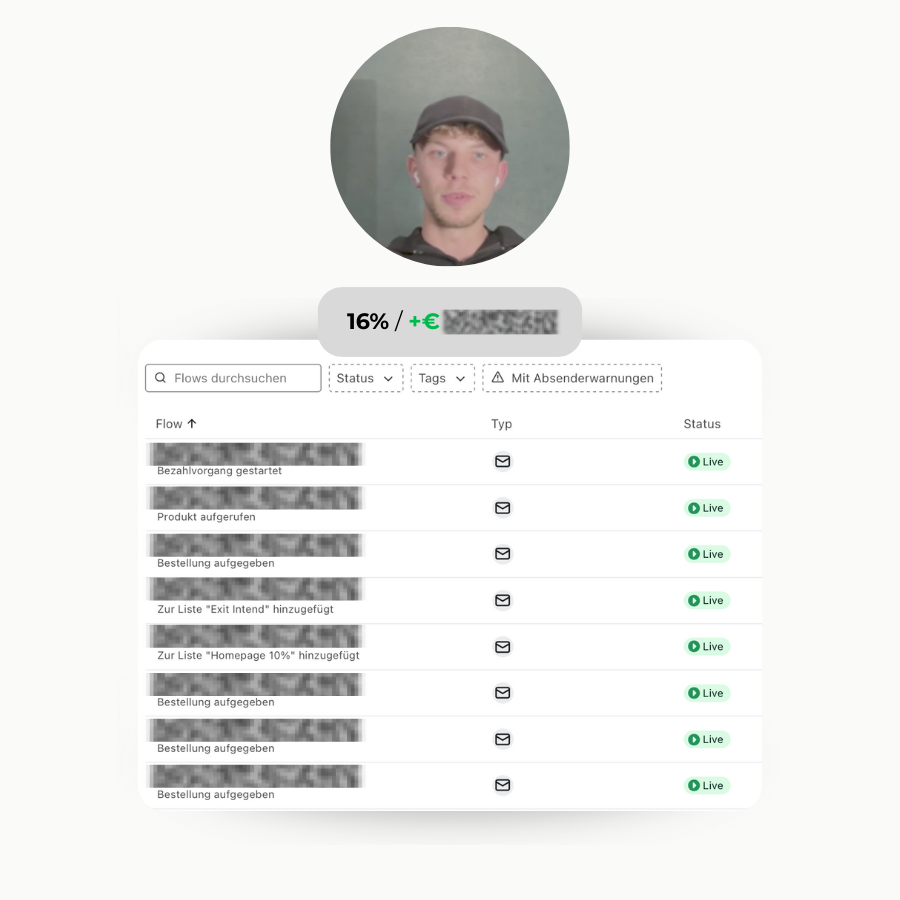 Einmal eingerichtet, laufen deine wichtigsten Flows von selbst und bringen dir jeden Monat Umsätze rein, stabil, planbar und unabhängig von externen Faktoren. Durch smarte Strategien lernst du, wie du scheinbar verlorene Kunden wieder in Käufer verwandelst.